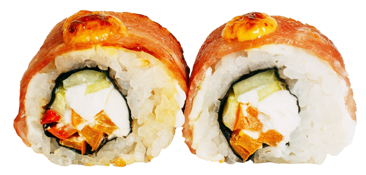 Нори, рис, творожный сыр, огурец, помидор, бекон