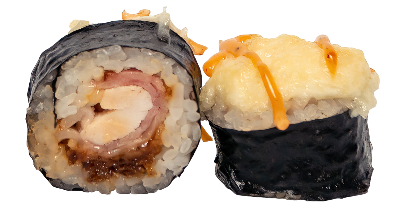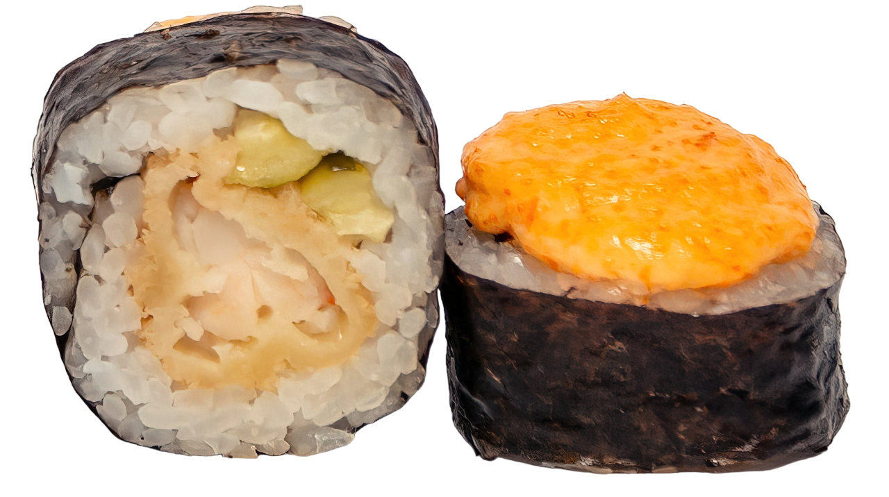 Нори, рис, креветка в темпуре, огурец, соус сегун