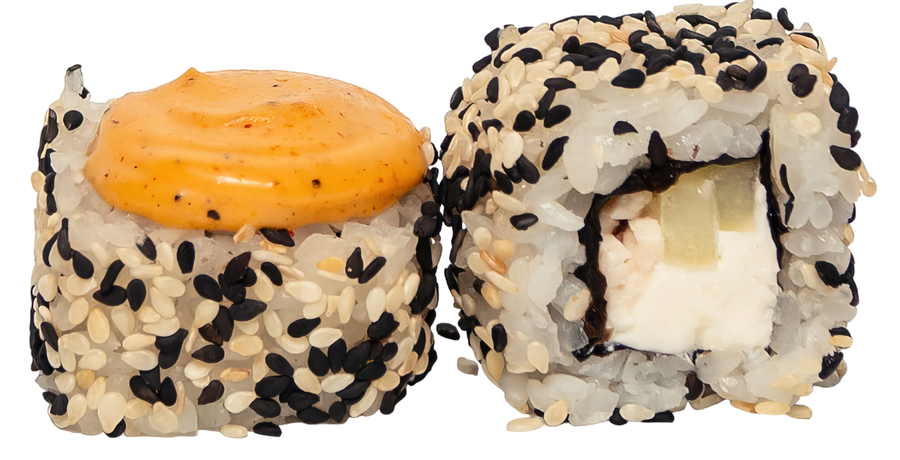 Нори, рис, огурец, курица в/к, творожный сыр, кунжут,