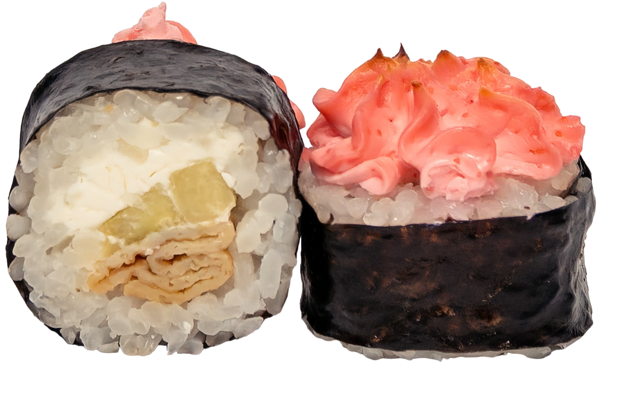Нори, рис, творожный сыр, огурец, омлет томаго, краб-крем