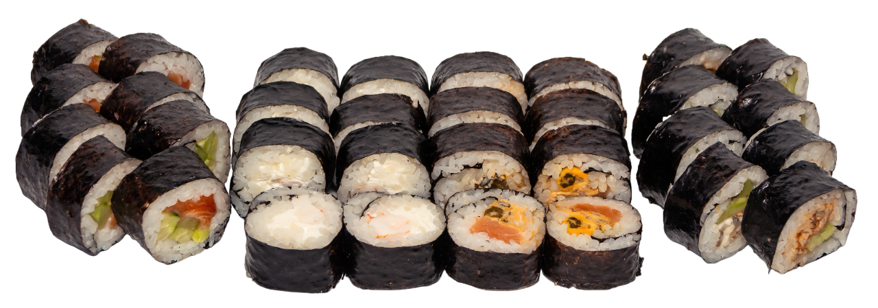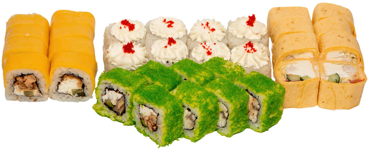 Маки с огурцом, Маки с авокадо, Филадельфия-лайт с огурцом, Филадельфия-лайт с крабовыми палочками и огурцом