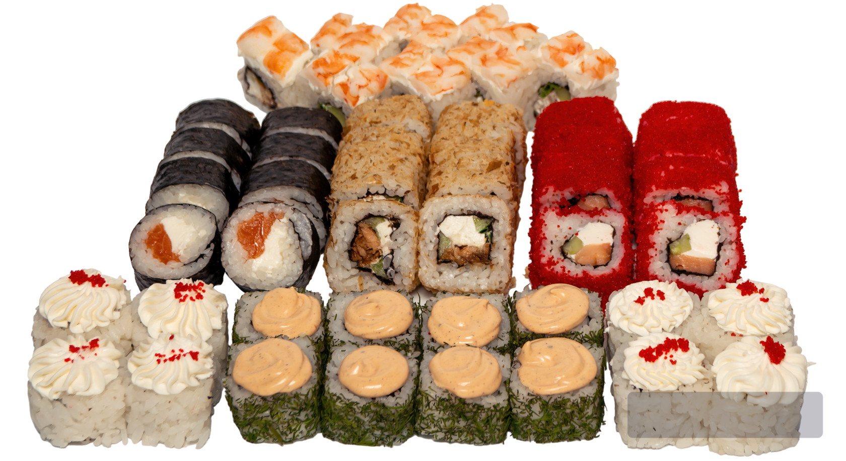 Лосось огурец, Лосось мидии, Угорь огурец, Креветка сыр